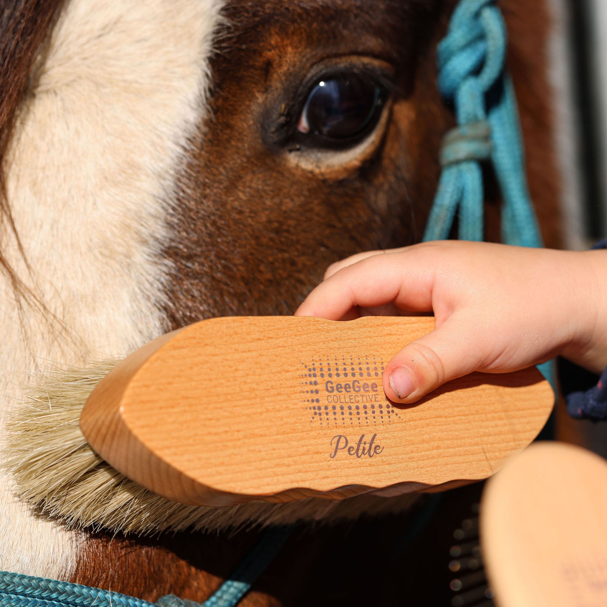The 'Versatile' is as the name suggests - the perfect all rounder! It comprises of natural soft finishing bristles that promote a dust free coat with shine. It provides a slightly stronger alternative to our 'Softie' brush and as it's made of a natural sisal bristle with horse hair centre. The sisal has anti static properties and completely sustainable and natural alternate to plastic brushes. The Versatile is part of our 'Petite' range which has been specifically designed for adults and children who prefer a smaller brush.